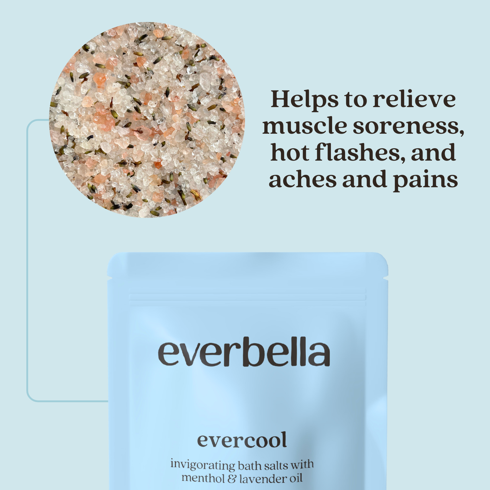 Relieve muscle soreness, hot flashes, and aches and pains with Evercool Bath Salts. Crafted with a blend of invigorating menthol, soothing camphor, and calming lavender, these luxurious salts provide therapeutic benefits for your body and mind.