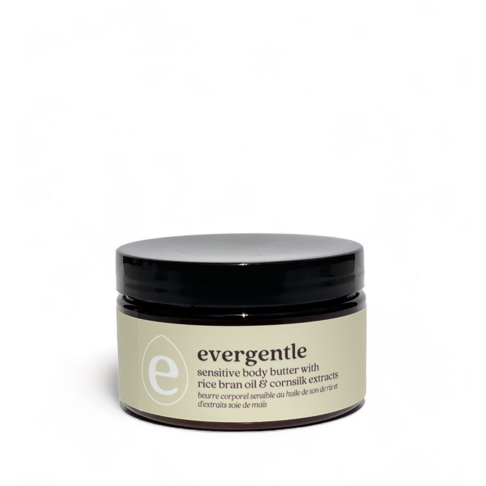Our Evergentle Body Butter is infused with a blend of all-natural ingredients like Shea Butter, Rice Bran Oil, Flaxseed Oil, and Cornsilk Extract. These ingredients work together to deeply restore the skin's natural moisture barrier, reducing redness, deeply nourishing and protecting the skin, leaving it hydrated, smooth, and soft for hours.