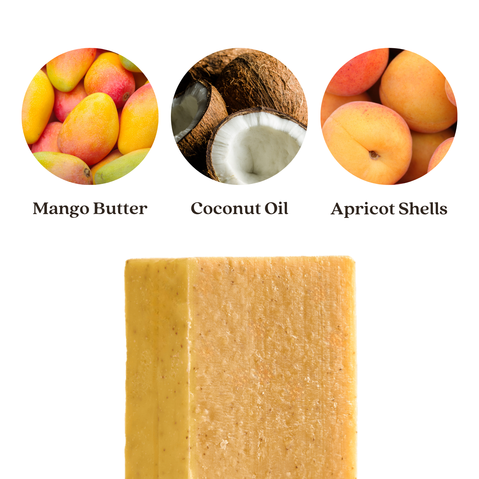 Saponified: *Elaeis Guineensis (Sustainably Sourced Palm) Fruit Oil, Cocos Nucifera (Coconut) Oil, Olea Europaea (Olive) Fruit Oil, Ricinus Communis (Castor) Seed Oil, Butyrospermum Parkii (Shea) Nut Butter, ᴥLimonene, Citrus Reticulata (Tangerine) Peel Oil, Persea Gratissima (Avocado) Fruit Oil, Citrus Clementina (Clementine) Peel Oil, Mangifera Indica (Mango) Seed Butter, Citrus Sinensis (Orange) Peel Oil, Kaolin Clay, Prunus Armeniaca (Apricot) Kernel Powder, Bixa Orellana (Annatto) Seed Powder, Citrus Aurantium Bergamia (Bergamot) Peel Oil, Sodium Chloride (Sea Salt), ᴥLinalool, *RSPO Certified Sustainably Sourced, ᴥNaturally Occurring In Some Pure Essential Oils
