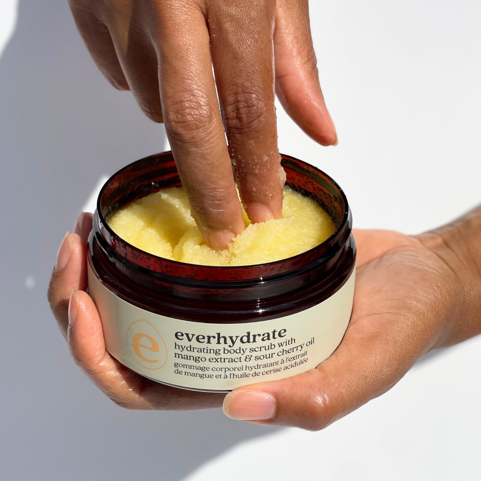 Take a small amount of the everhydrate scrub and gently massage it onto the areas where you have dry, chafing or uneven texture patches of skin.